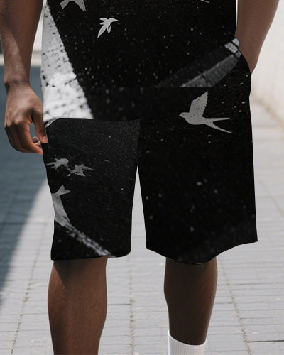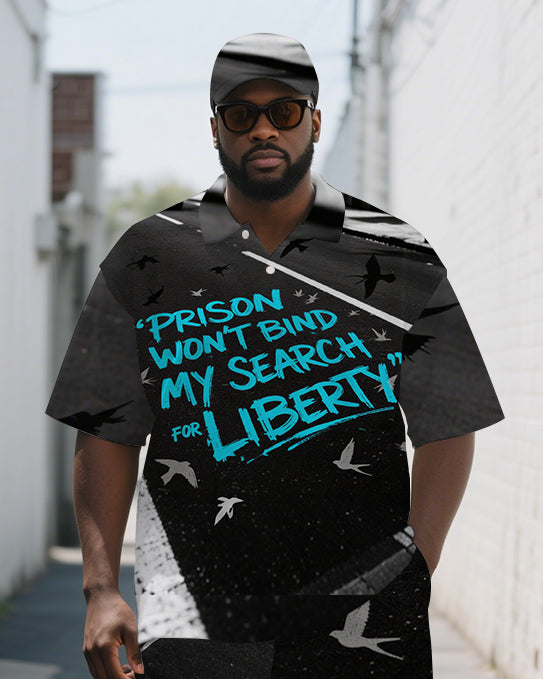 Big Guy's PRISON Theme Artistic Lettering Graffiti Casual Short Sleeve Polo Shirt and Shorts Set