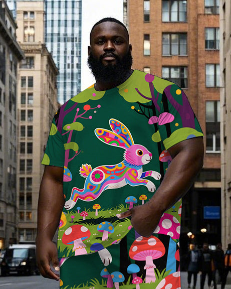 Big Man Animal Theme Forest Rabbit Cartoon Printed Short Sleeve T-shirt Pants Set