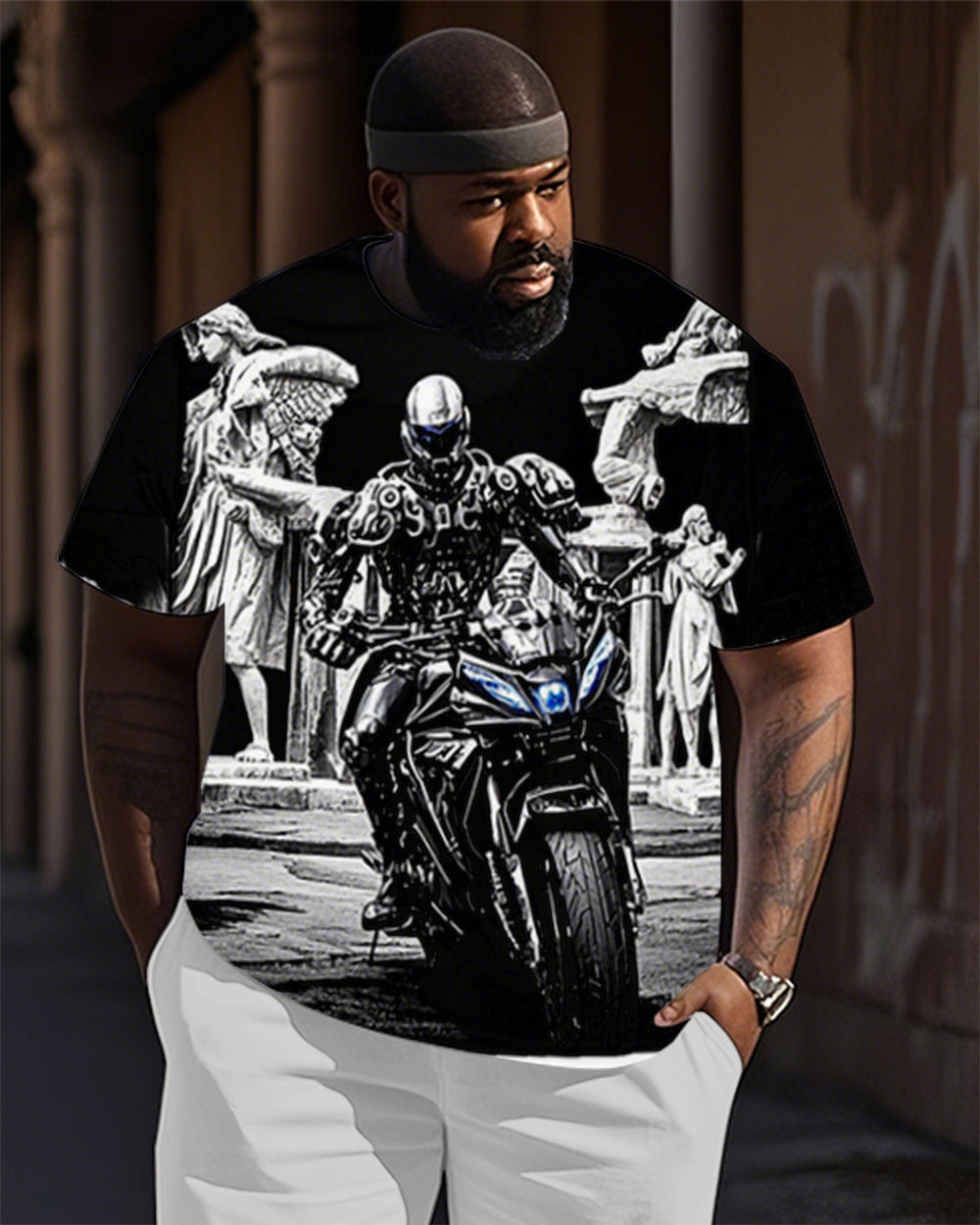 Big Man Biker Cyberpunk Print Top T-Shirt