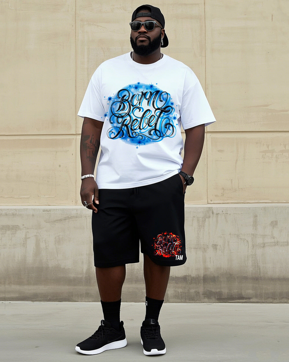 Big Man Street Fashion Handmade Art Personality Graffiti Short Sleeve T-Shirt Shorts Suit