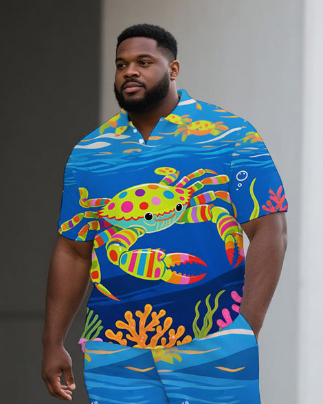 Big Man's Abstract Animal World Cute Crab Printed Casual Short-Sleeve Polo Shirt & Shorts Set