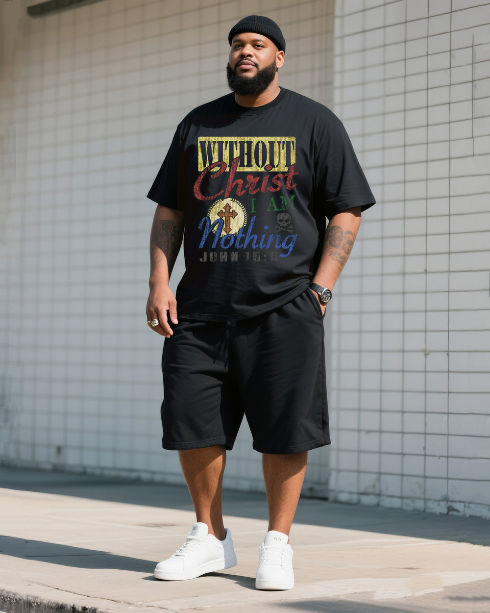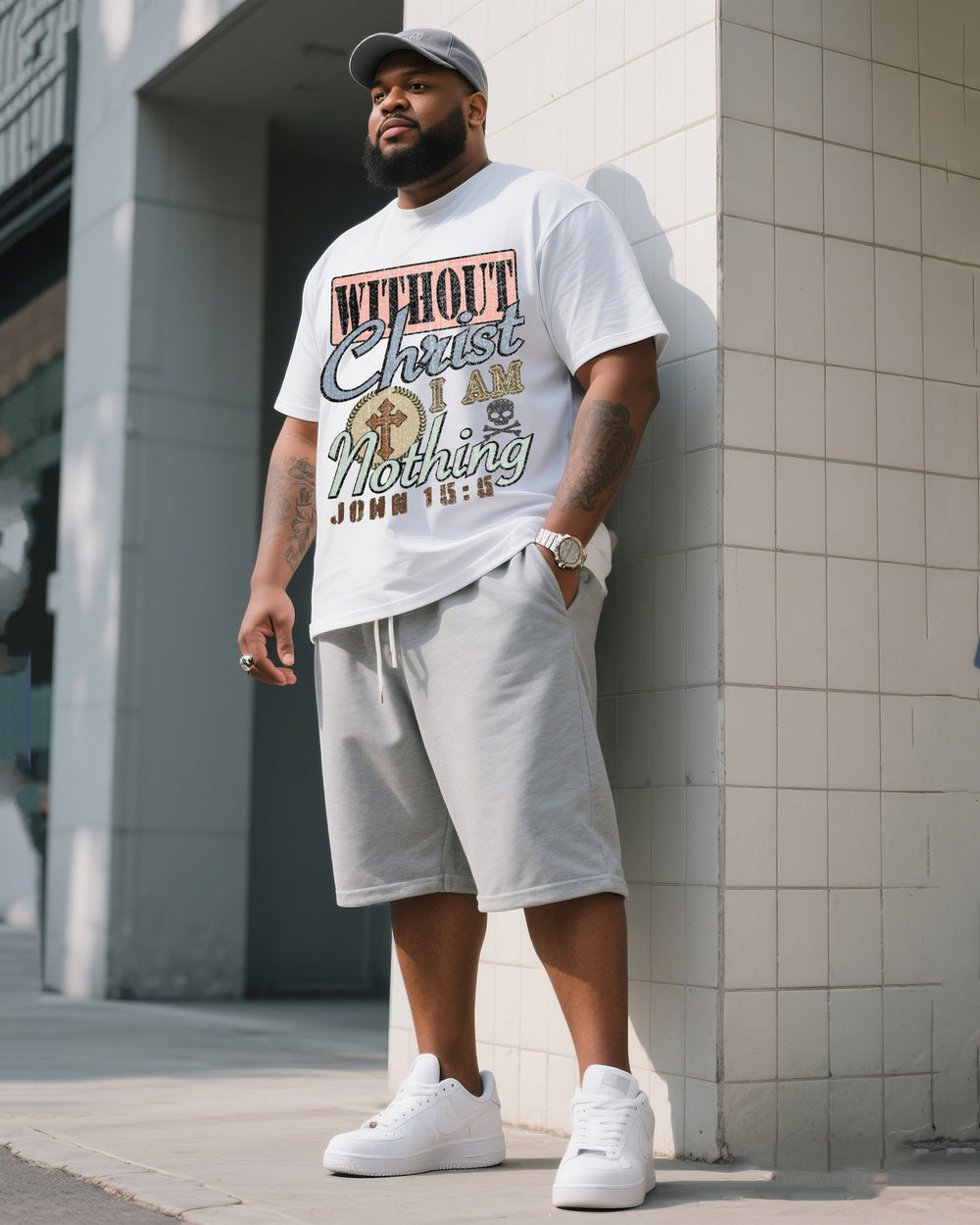 Big Man's Daily Casual Faith John Gospel Print Short Sleeve T-Shirt Shorts Suit