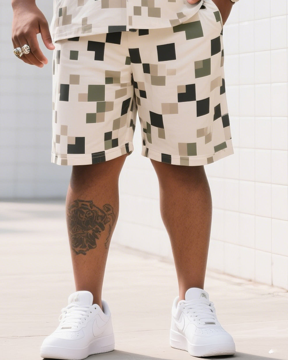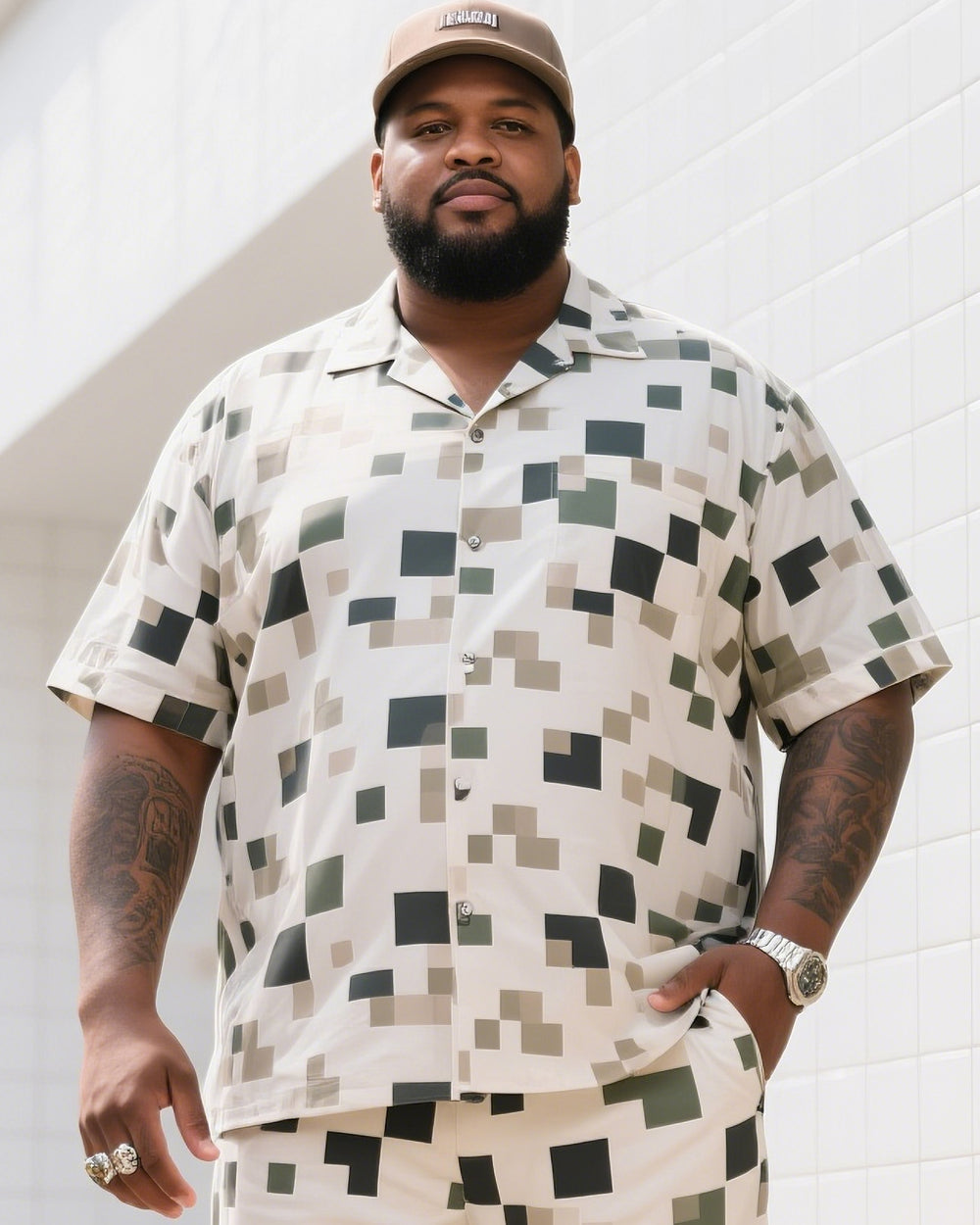 Big Man's Daily Casual Square Creative Camouflage Short Sleeve Shirt Shorts Suit