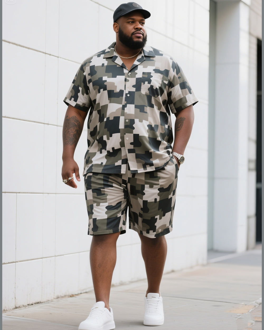 Big Man's Daily Casual Square Creative Camouflage Short Sleeve Shirt Shorts Suit