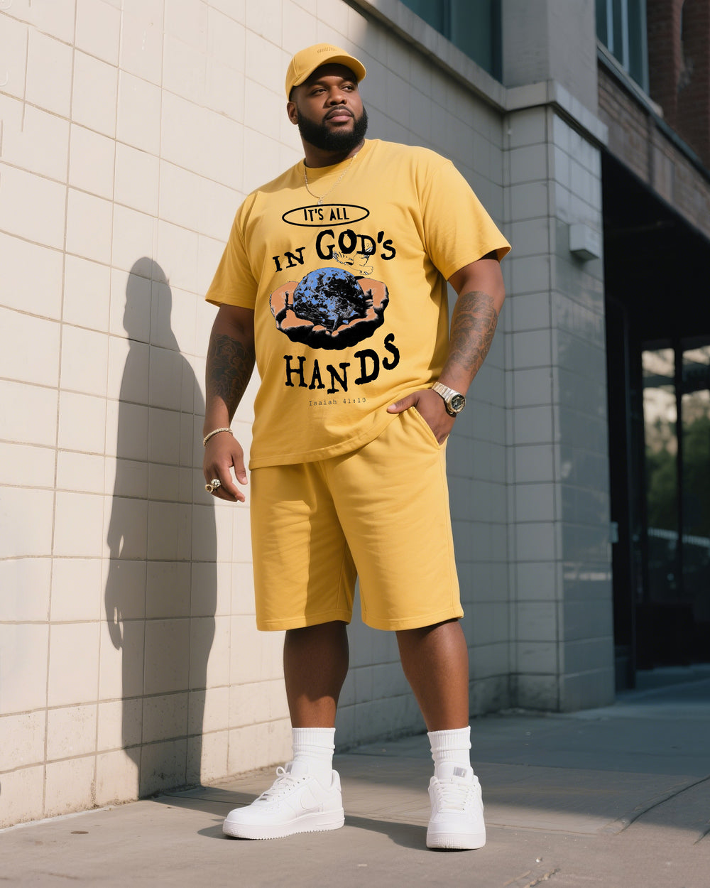 Big Man's Daily Leisure God With You Short Sleeve T-shirt Shorts Suit