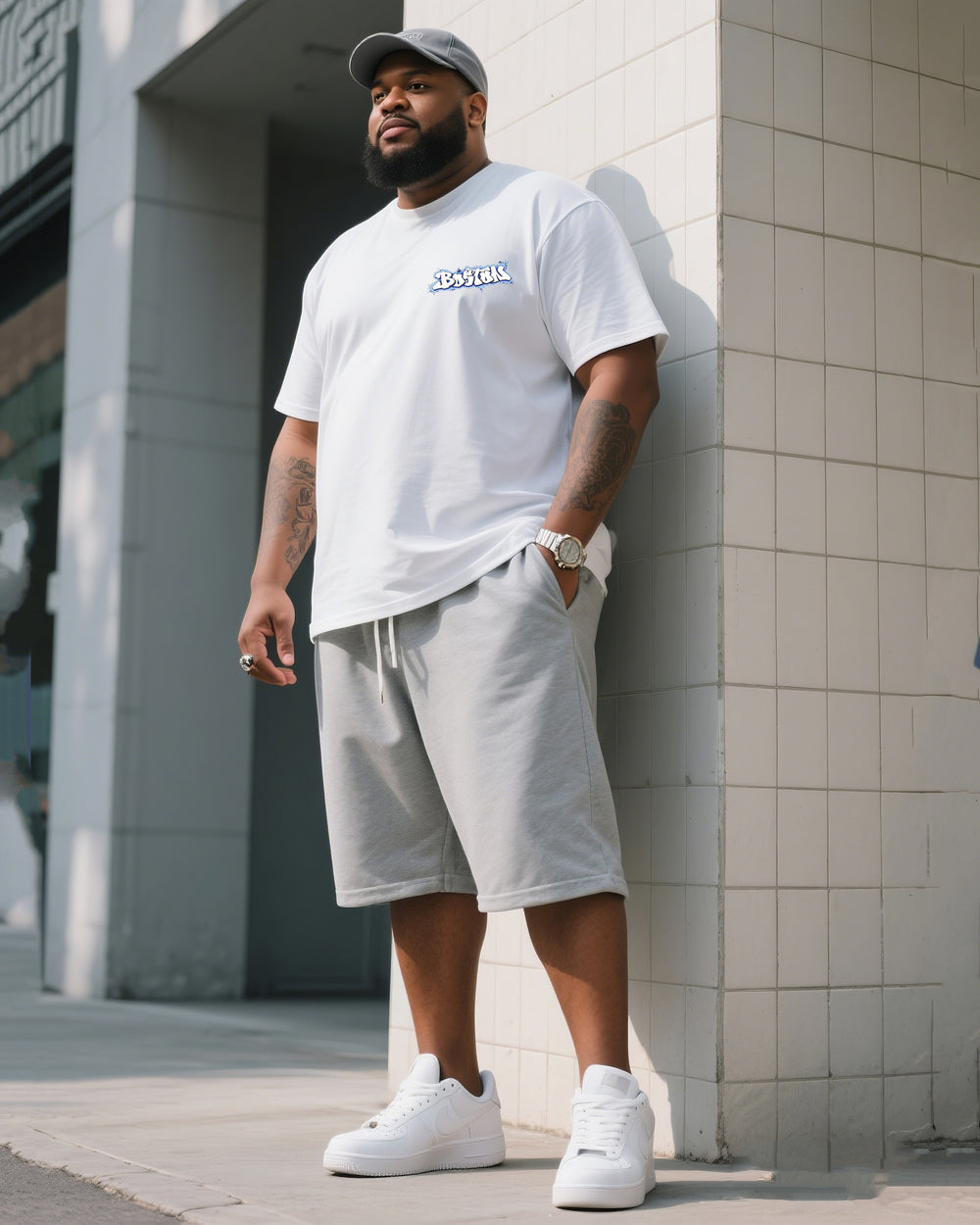 Big Man's Daily Leisure Micro-standard Small Design Printed Short Sleeve T-shirt Shorts Suit
