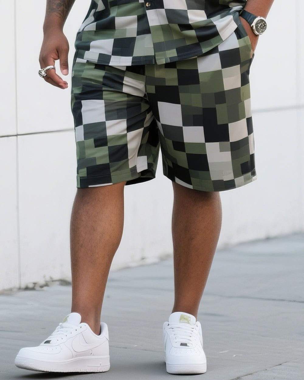 Big Man's Daily Leisure Outdoor Activities High Creative Checkered Camouflage Short Sleeve Shirt Shorts Suit
