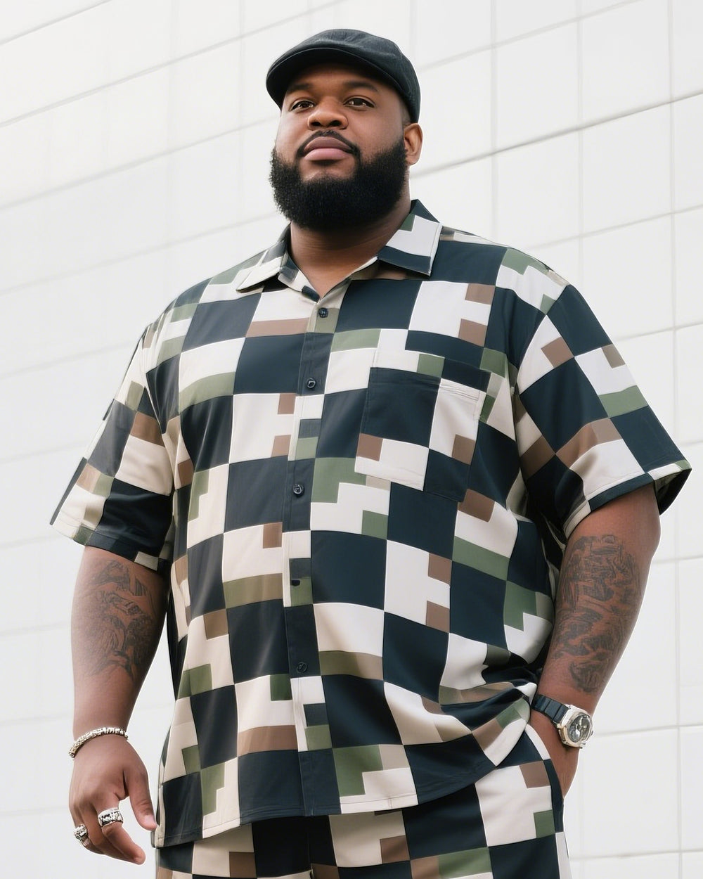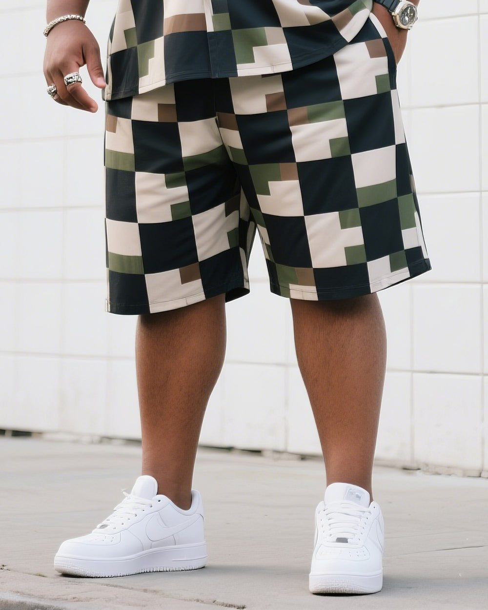 Big Man's Daily Leisure Outdoor Activities High Sense Creative Camouflage Short Sleeve Shirt Shorts Suit