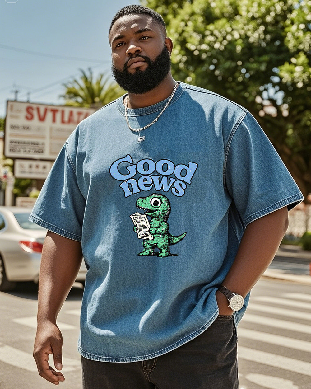 Big Man's Little Dinosaur Brings Good News Denim T-shirt