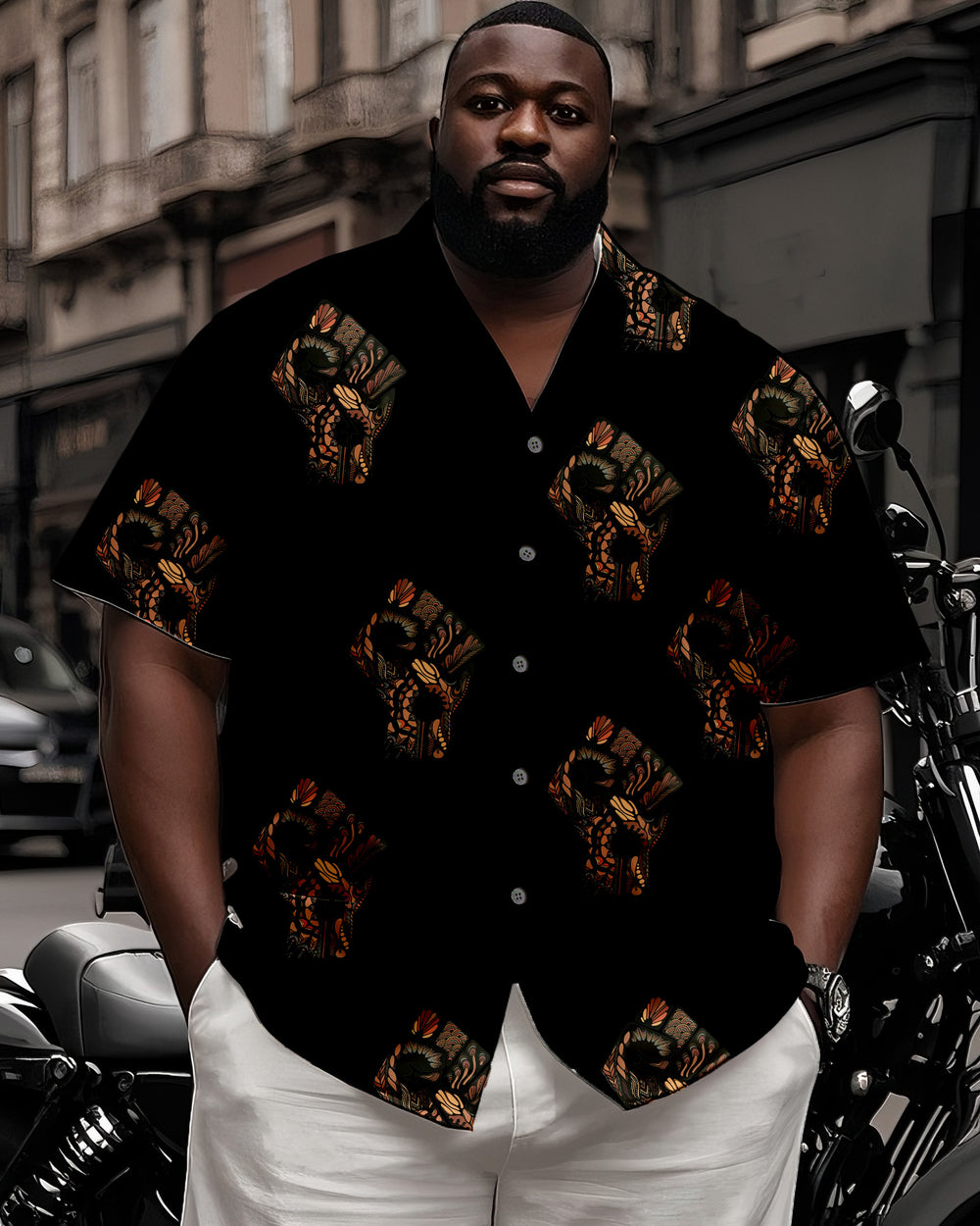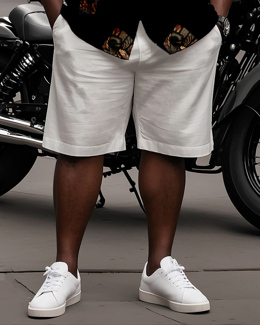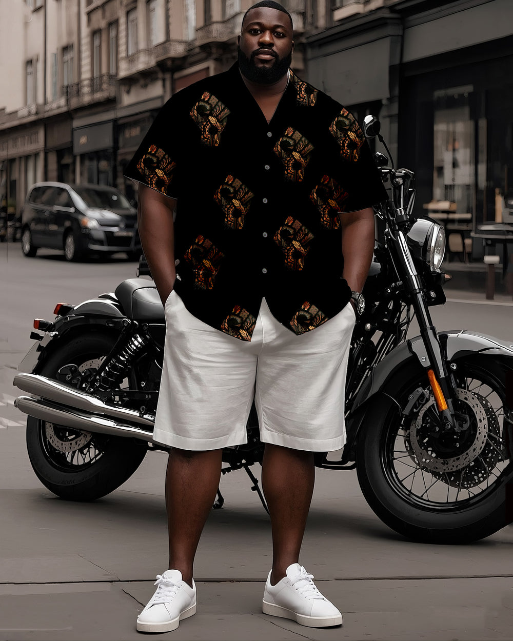 Big Man's Street Biker Juneteenth Fist Print Black Short Sleeve Shirt White Shorts Suit