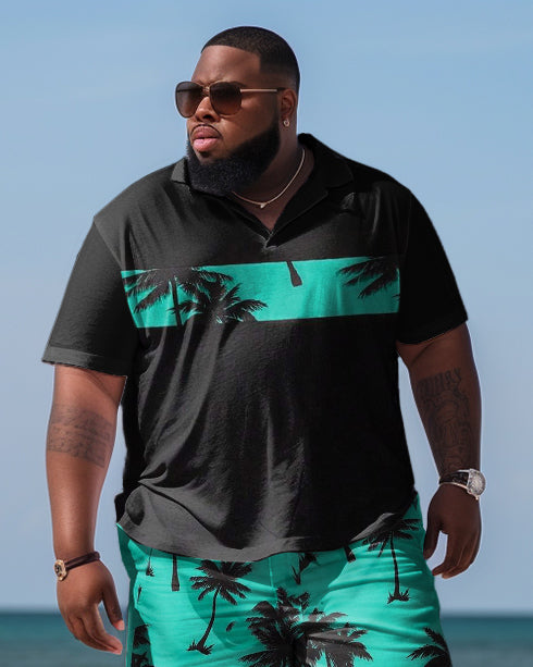 Want to try simple Hawaiian-inspired clothing? This big men's Polo shirt and shorts set is for you. The color block design gives the whole outfit a contemporary feel while maintaining the . Its loose version ensures freedom and comfort, perfect for various summer events.