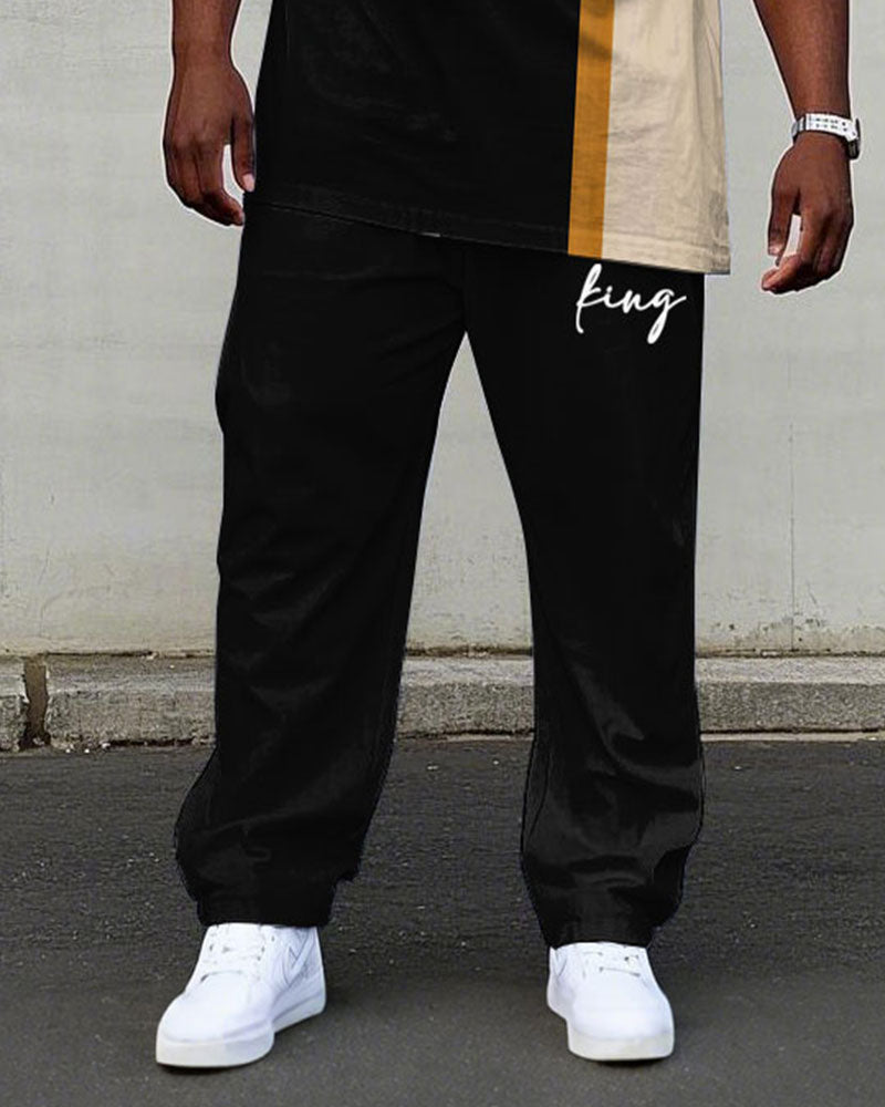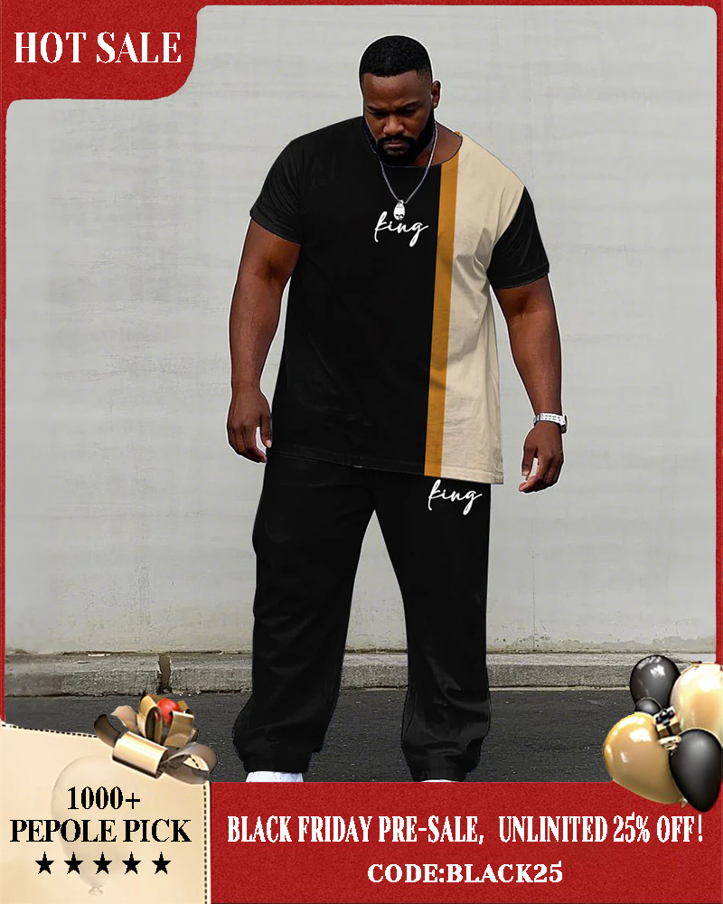 Designed for effortless sophistication, this big men’s 2-piece set combines understated elegance with urban versatility. The khaki block adds a refined contrast, while minimalist art-font prints create subtle visual interest. Expertly cut with a slimming silhouette, this set flatters every body type while offering all-day comfort.