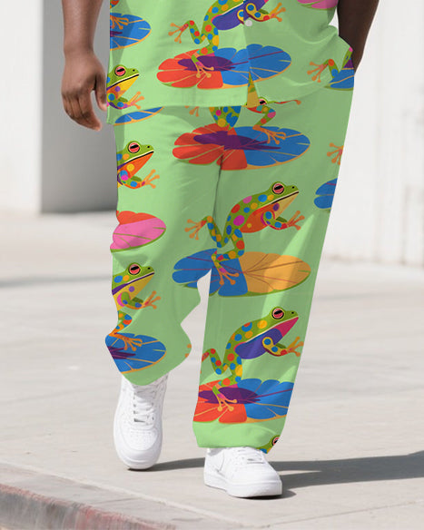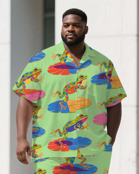 Big Men's Animal Cartoon World Frog Printed Short-Sleeve Shirt Pants 2-Piece Sets