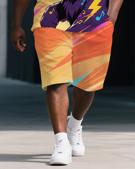 Big Men's Animal Theme Musical Bear Cartoon Printed Short-Sleeve Polo Shirt & Shorts Set