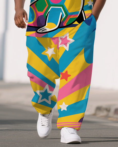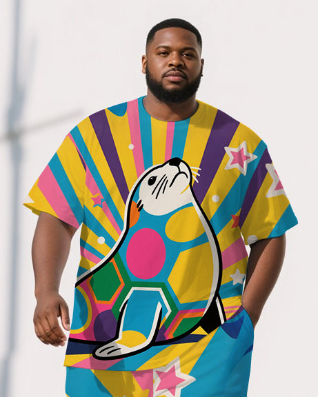 Big Men's Animal Theme Seal Cartoon Printed Casual Short Sleeve T-shirt Pants Set