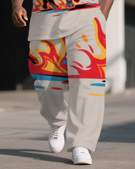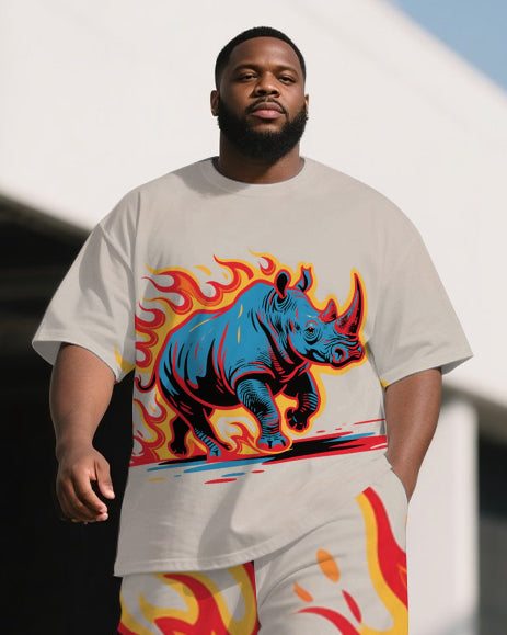 Big Men's Animal World Fire Rhino Printed Outdoor Short Sleeve T-shirt Pants Set
