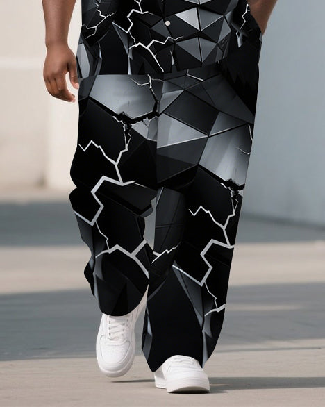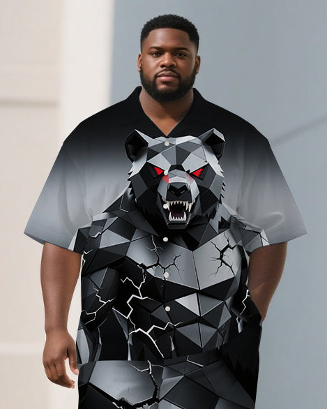 Big Men's Armored Bear Cartoon Gradient Effect Streetwear Short Sleeve Shirt Pants Set