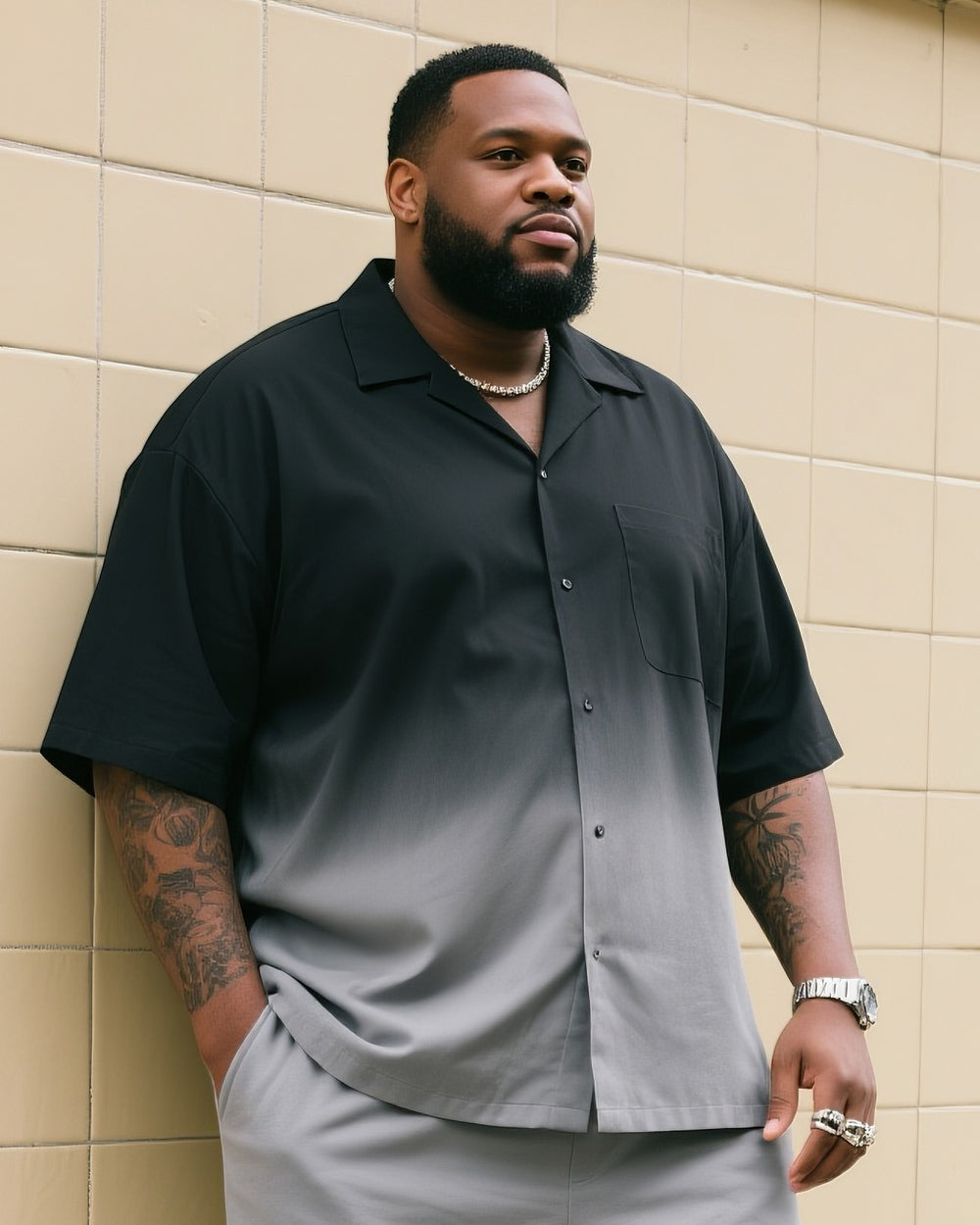 Big Men's Black Gradient Gray Short Sleeve Shirt Shorts Suit