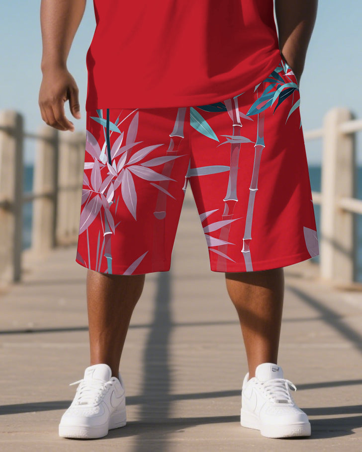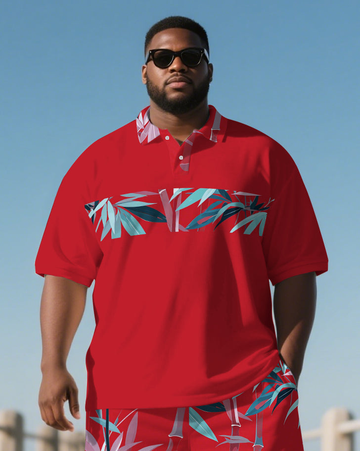 Big Men's Bold Fashion Bamboo Hawaiian Theme Short Sleeve Polo Shirt 2-piece Short Set