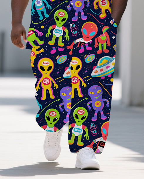 Big Men's Cartoon World Alien Printed Casual Outdoor Short-Sleeve Shirt Pants 2-piece Sets