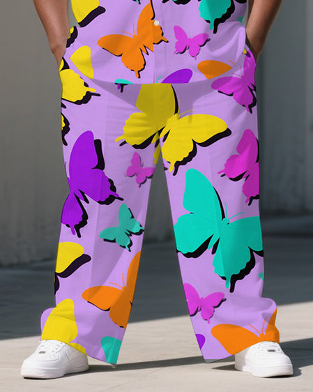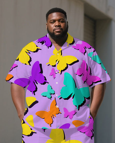 Big Men's Cartoon World Butterfly Silhouette Printed Casual Short-Sleeve Shirt Pants Sets