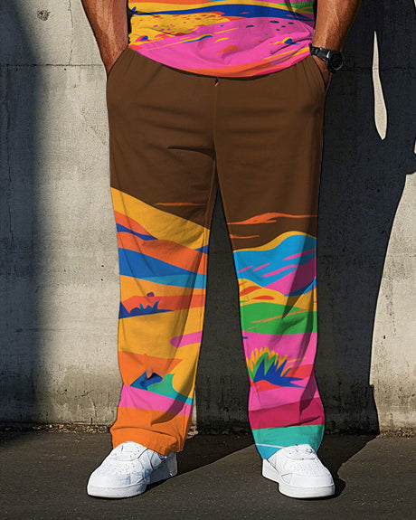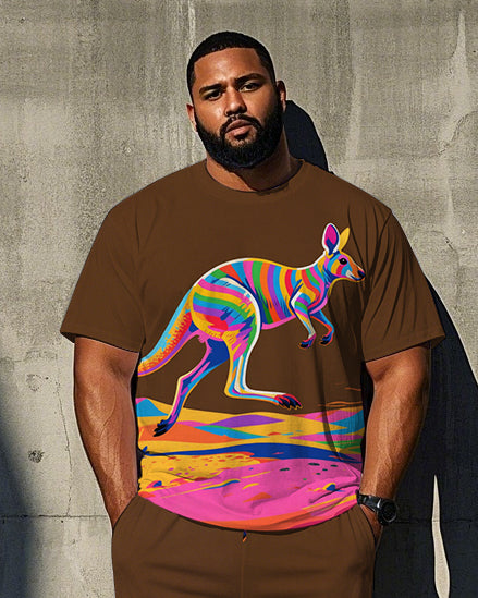 Big Men's Casual Animal World Colorful Kangaroo Printed Crew Short Sleeve T-shirt Pants Set