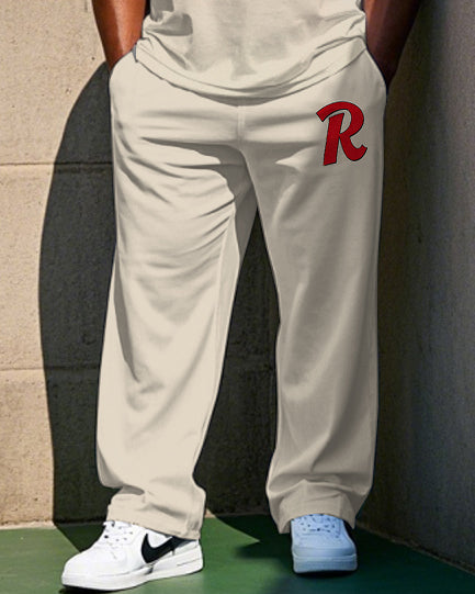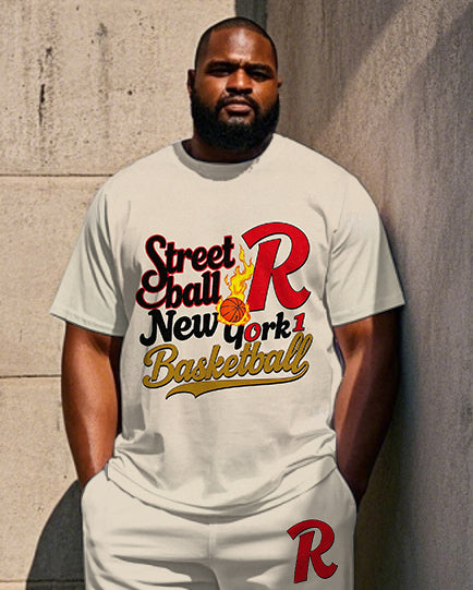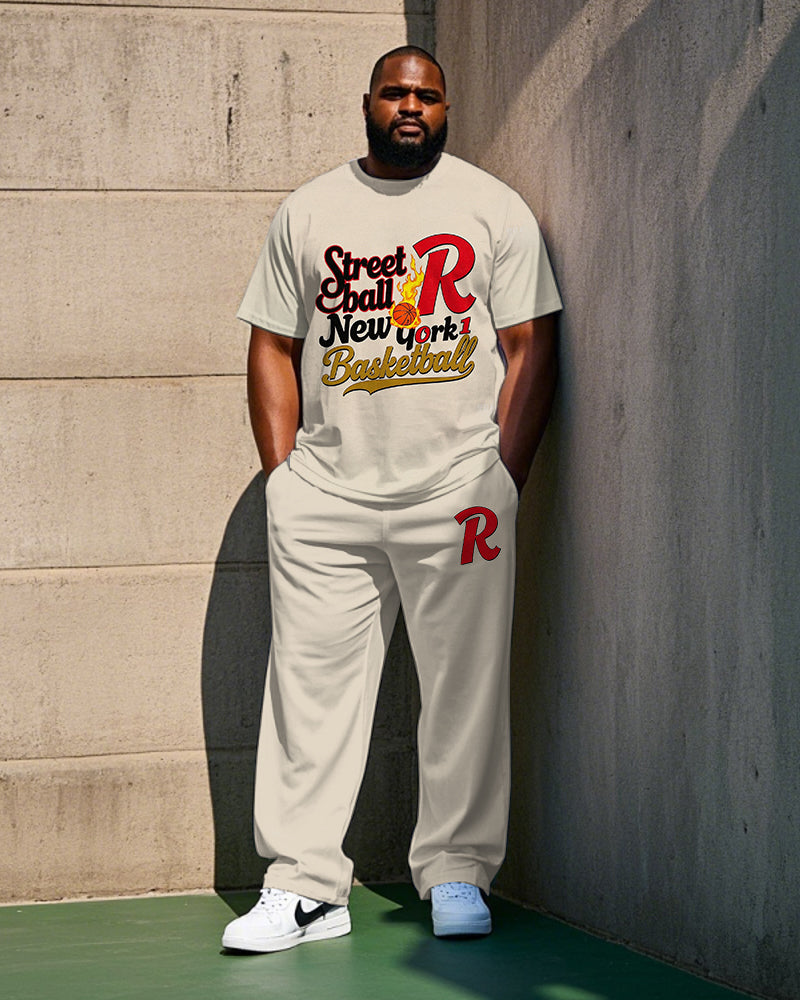 Big Men's Casual Fashion Fire Basketball Artistic Letter Printed Short Sleeve T-shirt Pants Set