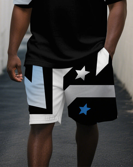 Big Men's Casual Simple Stars Geometric Style Short-Sleeve Polo Shirt Shorts 2-Piece Set