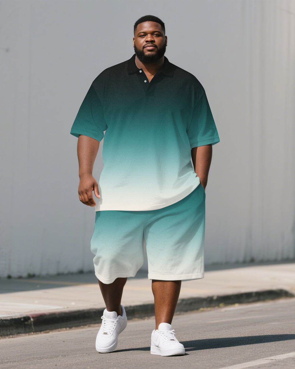 Big Men's Classic Green Gradient Short Sleeve Polo Shirt Shorts Sets