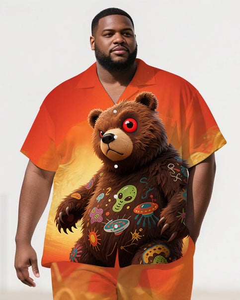 Big Men's Cute Bear Fashion Gradient Style Casual 2-Piece Short Sleeve Shirt Pants Set