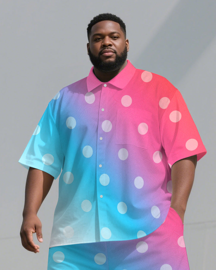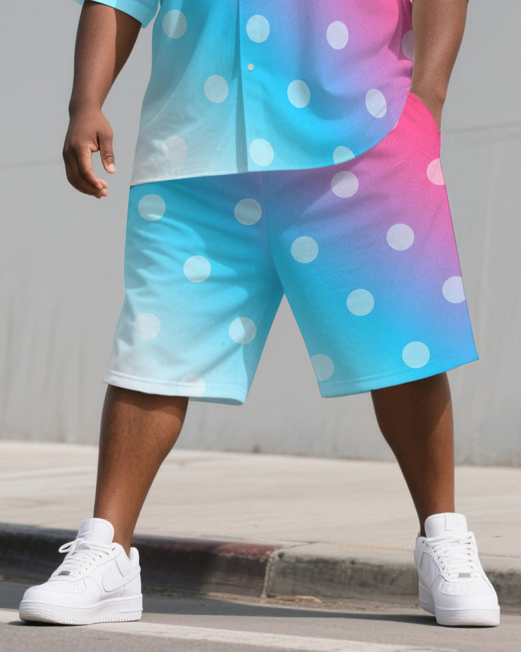 Big Men's Elegant Polka Dots Gradient Style Short-Sleeve Shirt & Shorts 2-Piece Suit