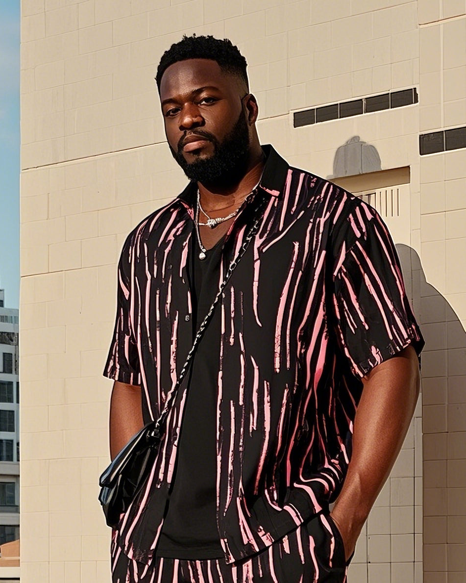 Big Men's Fashion Red Black Irregular Stripe Color Block Printing Short Sleeve Shirt Shorts Suit