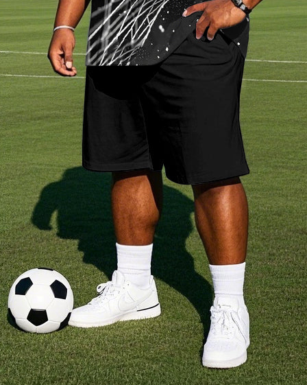 Big Men's Fashion Score! Football In The Net Printed Round Neck Casual Vest and Shorts Set