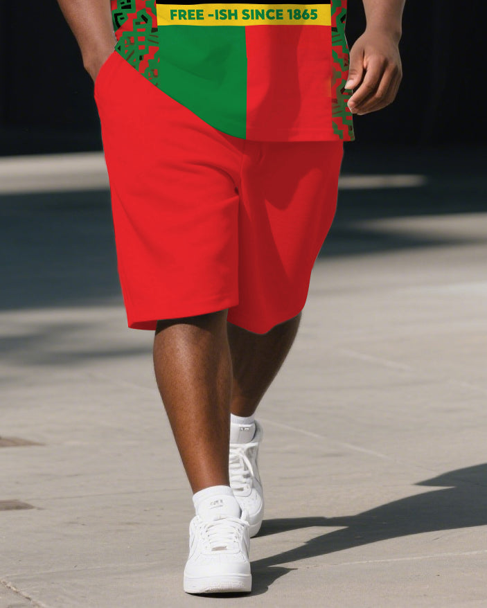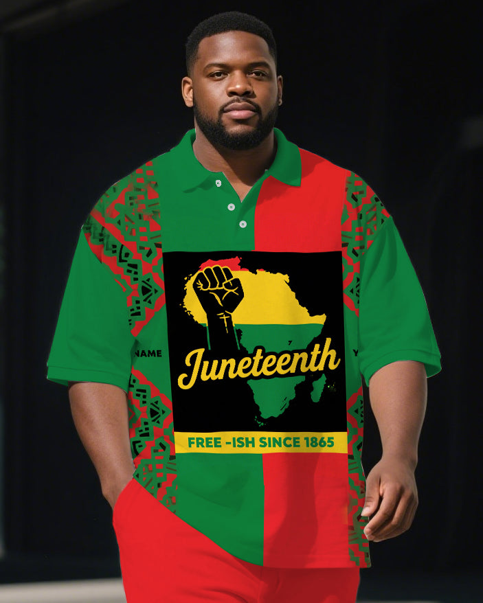 Big Men's Festival Fist Splicing Style Juneteenth Theme Short Sleeve Polo Shirt Shorts Suit