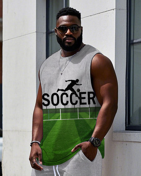 Big Men's Football Athlete Silhouette Playground SOCCER Printed Basketball Vest & Shorts Set