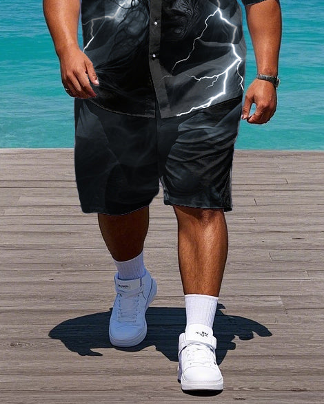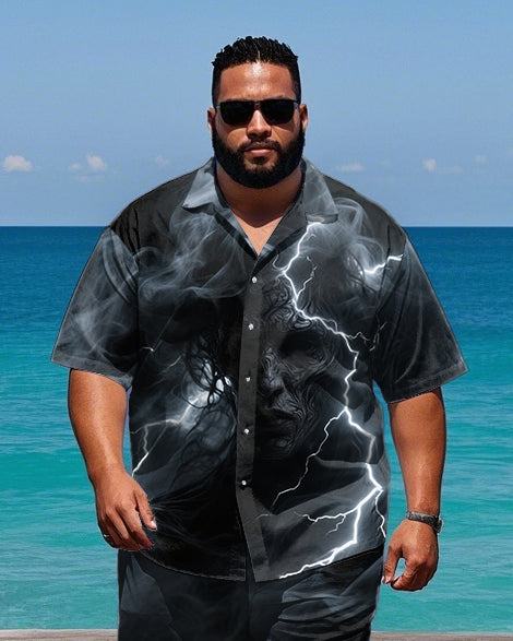 Big Men's Gothic Style Face in Lightning Smog Printed Short-Sleeve Shirt and Shorts Set