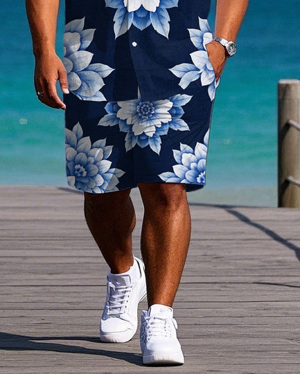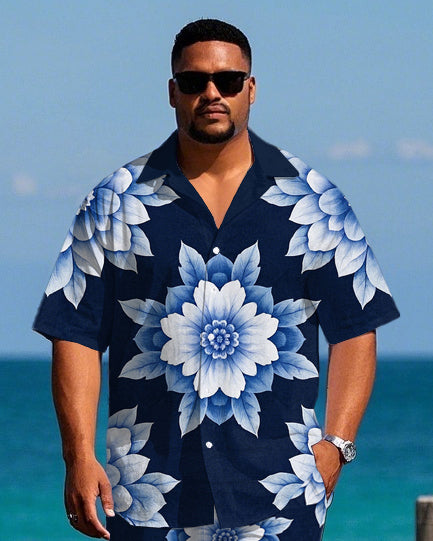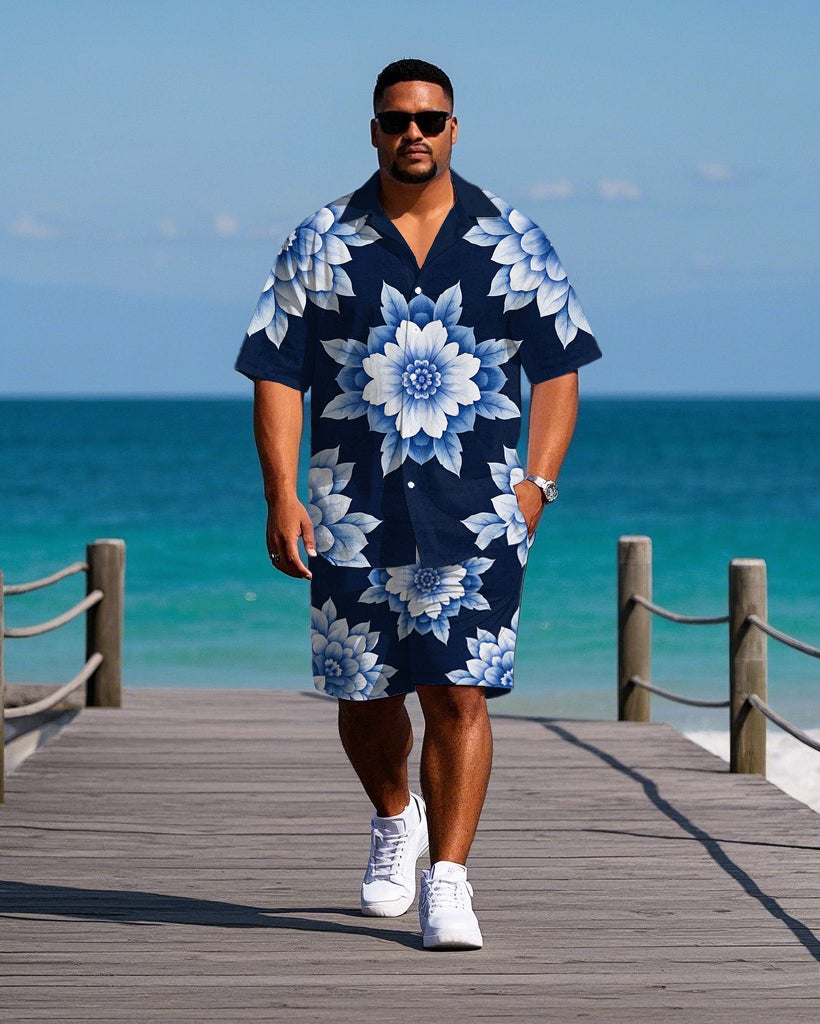 Big Men's Hawaii Theme Abstract Big Floral Printed Outdoor Casual Short Sleeve Shirt Shorts Set