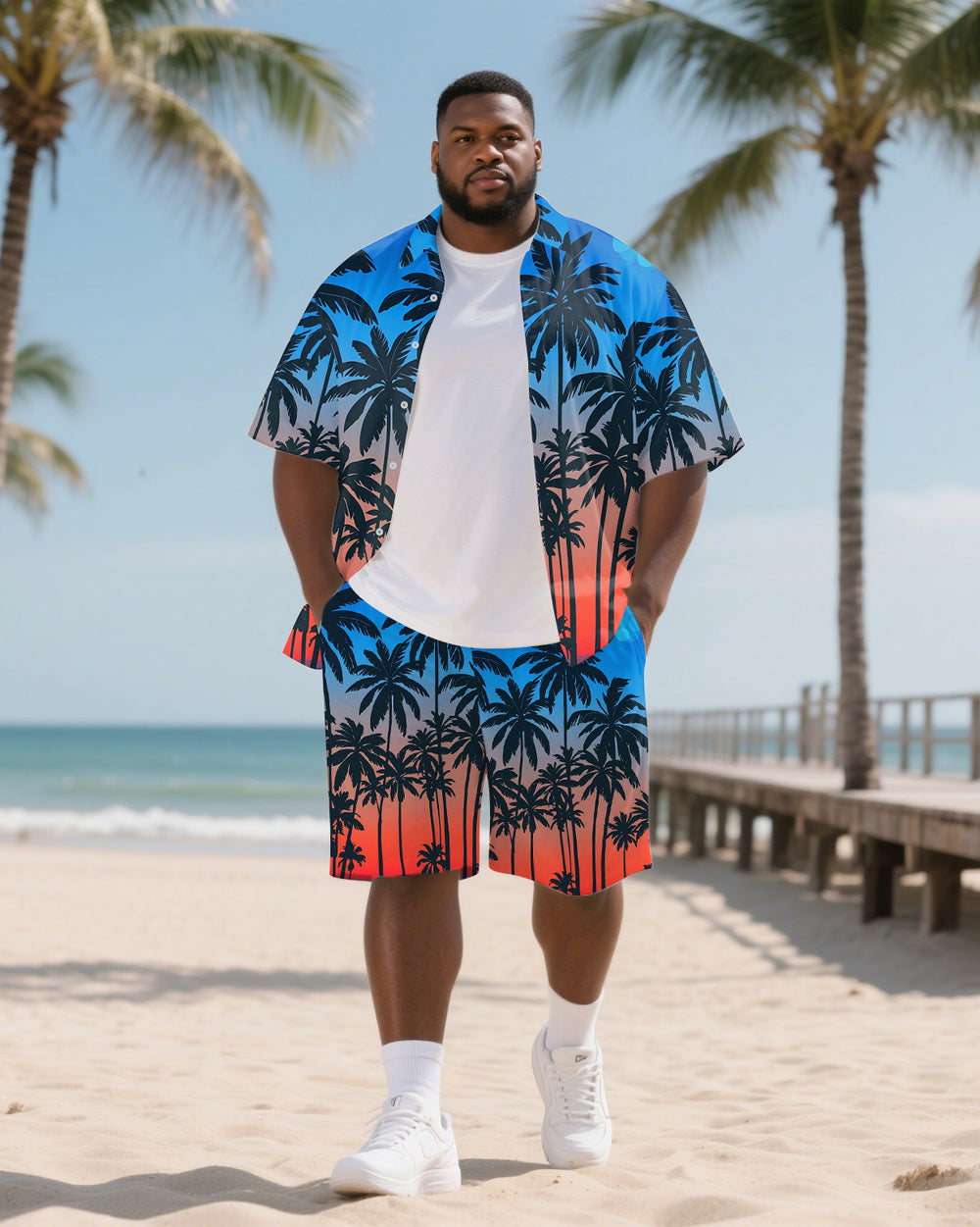 Big Men's Hawaii Theme Gradient Coconut Trees Printed Short Sleeve Shirt Shorts 2-Piece Suits