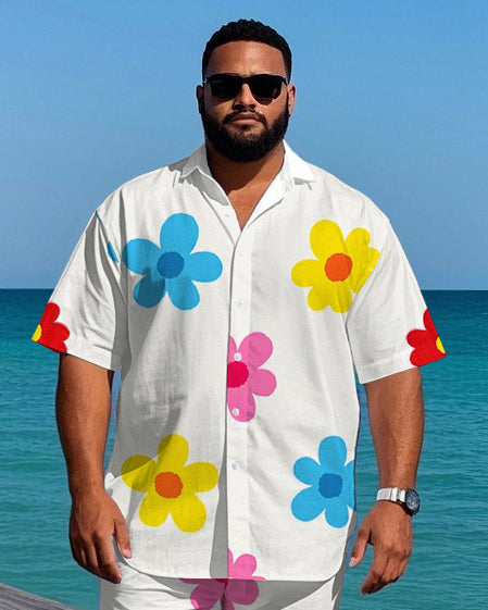 Big Men's Hawaii Theme Romantic Small Flower Printed Daily Casual Short Sleeve Shirt Shorts Set