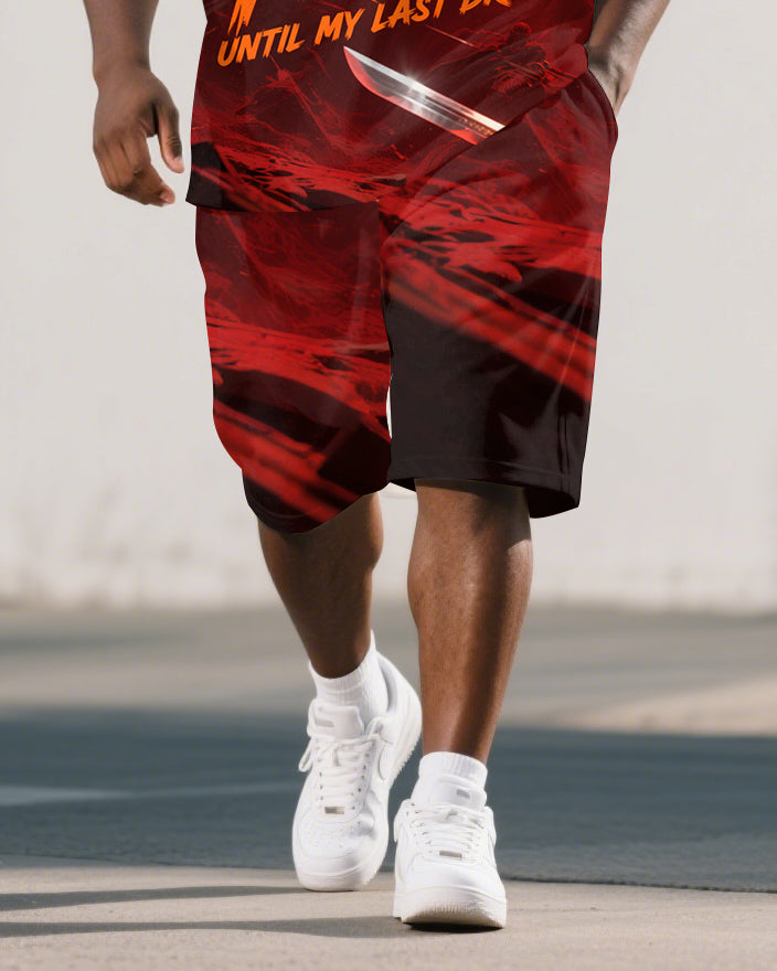 Big Men's I'LL BATTLE PRISON Lettering War Printed Short-Sleeve Polo Shirt & Shorts Set
