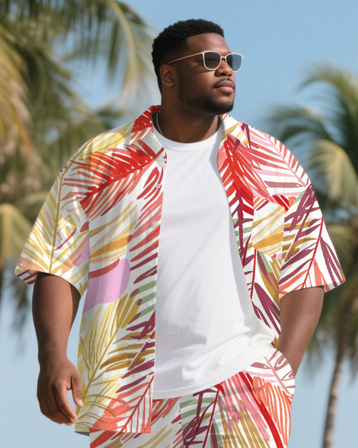 Big Men's Modern Fashion Palm Leaves Hawaiian Theme Short Sleeve Shirt Shorts 2-Piece Suit
