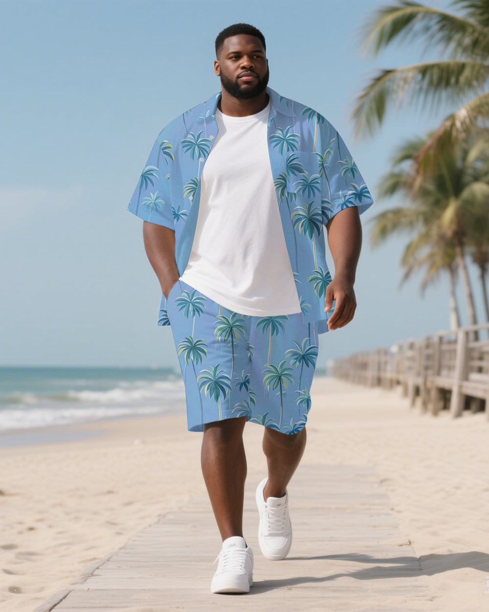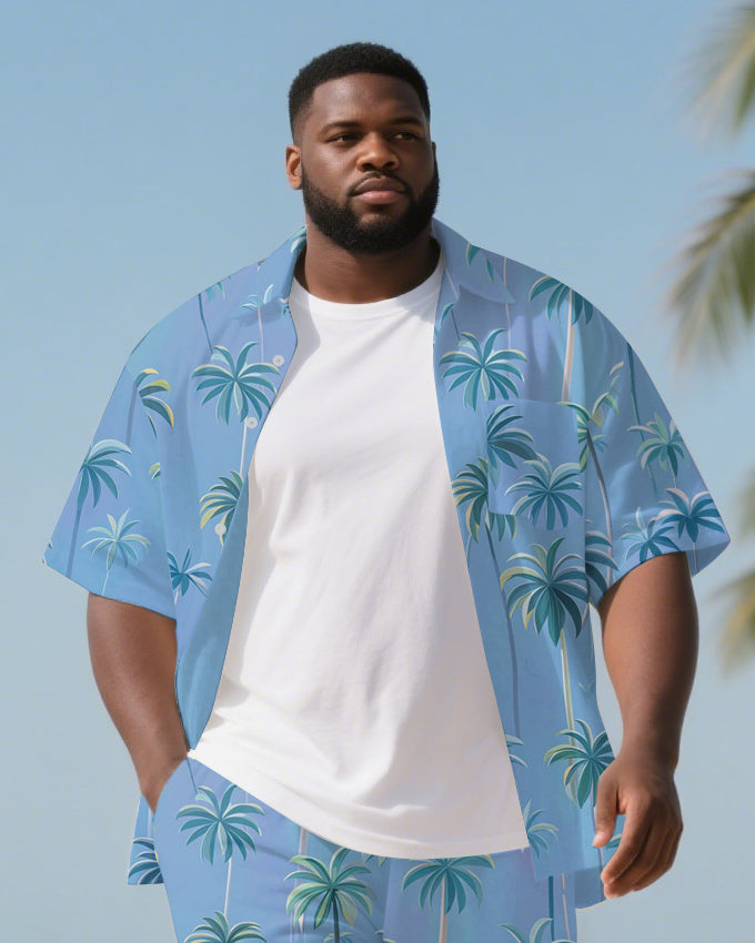 Big Men's Natural Theme Coconut Trees Hawaiian Style Short Sleeve Shirt Shorts 2-Piece Suit