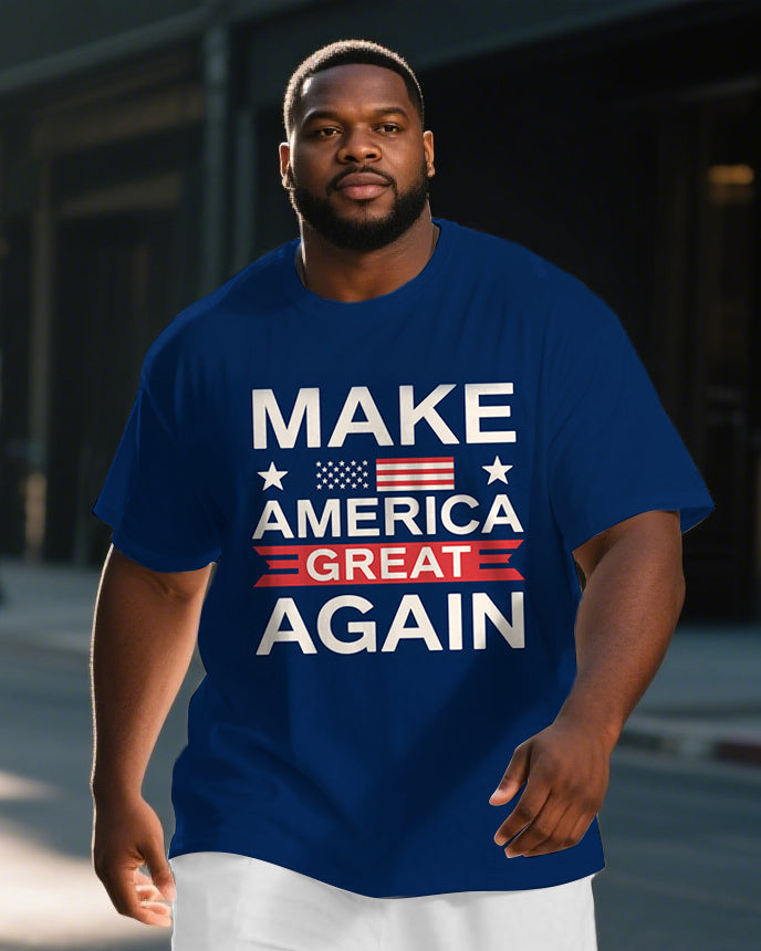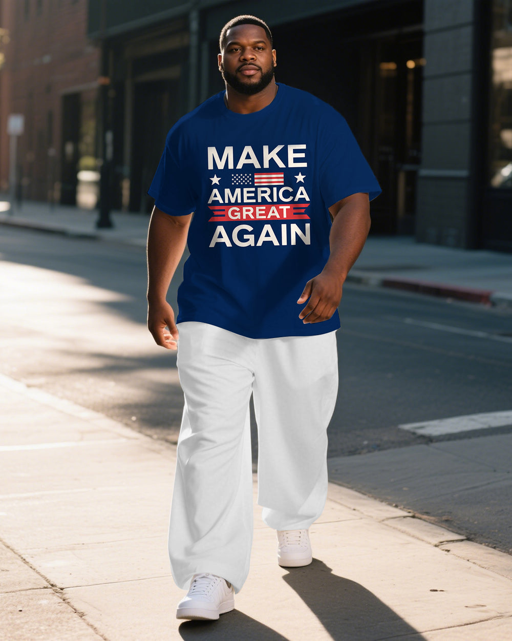 Big Men's Outdoor America Theme Sayings Printed Casual Short Sleeve T-shirt Pants Suit