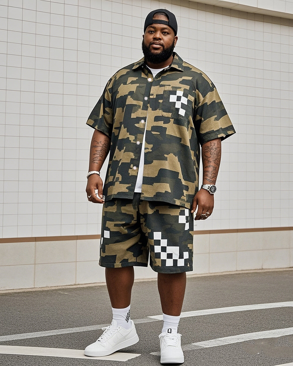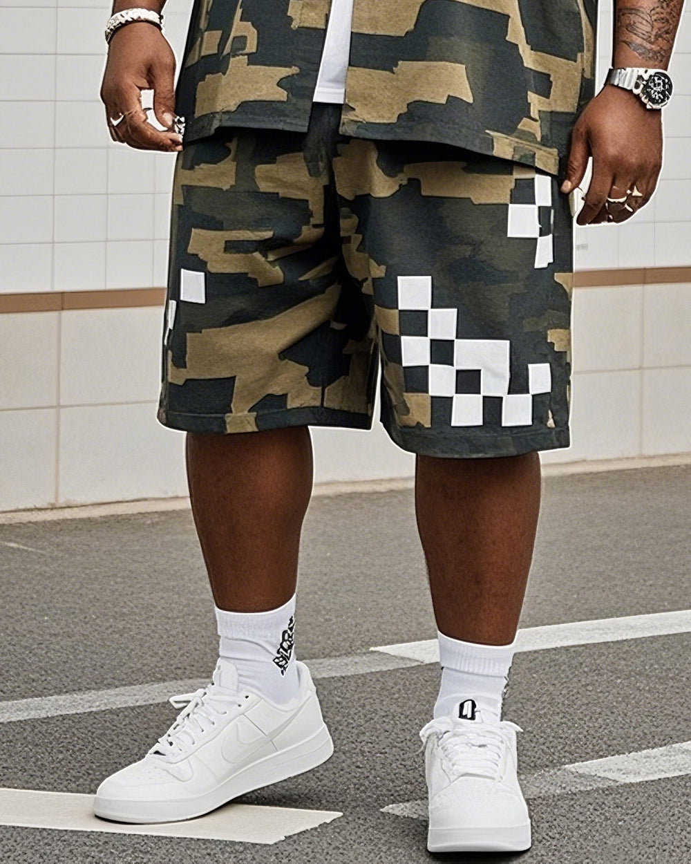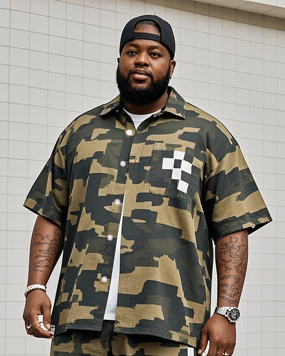 Big Men's Outdoor Mountain Climbing Activities Army Fans Camouflage Short Sleeve Shirt Shorts Suit
