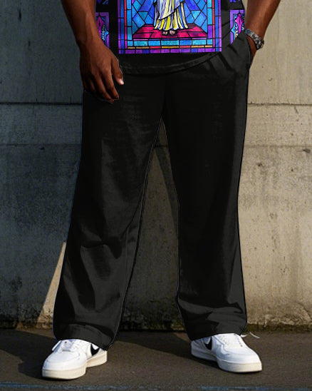 Big Men's Outdoor Retro Mural Savior Printed 2-Piece Short Sleeve T-shirt Pants Set