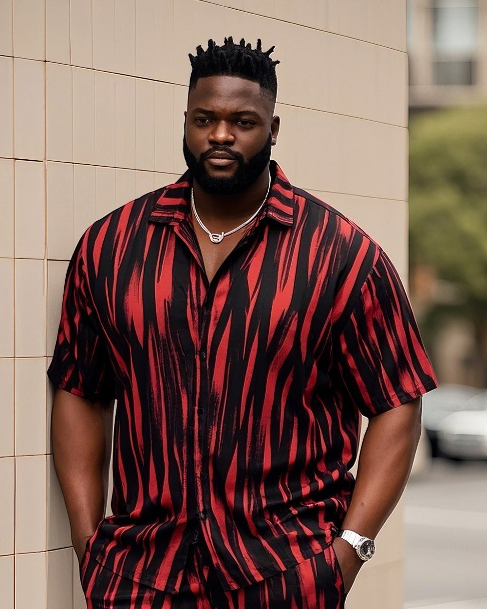 Big Men's-Retro Daily Casual Zebra Stripe Color Block Printed Short Sleeve Shirt Shorts Suit
