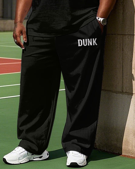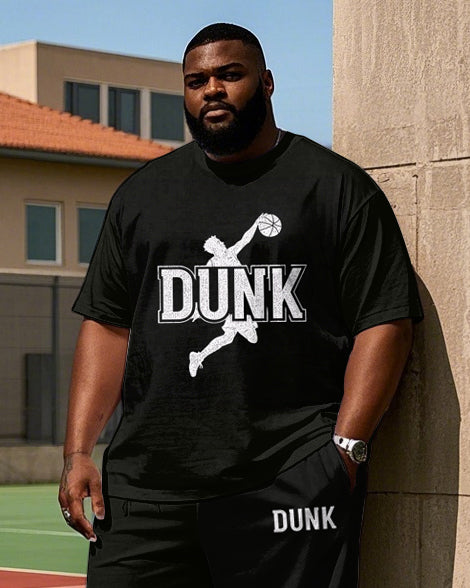 Big Men's Simple Basketball Athletic Silhouette DUNK Letter Printed Short Sleeve T-shirt Pants Set