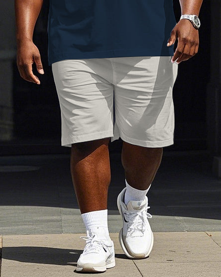 Big Men's Simple Blue Stripe Color Block Printed Short Sleeve Polo Shirt Shorts Set