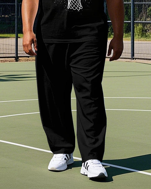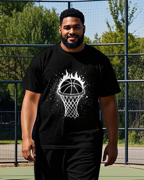 Big Men's Simple Fire Basketball Silhouette Printed Casual Short Sleeve T-shirt Pants Set
