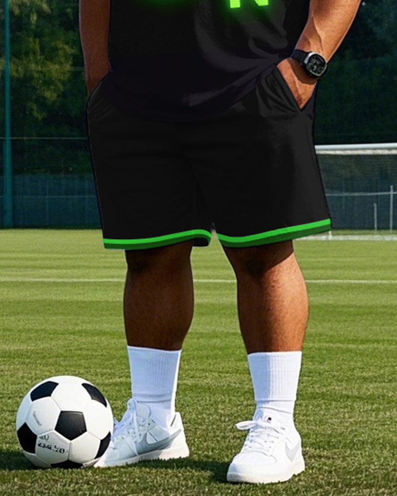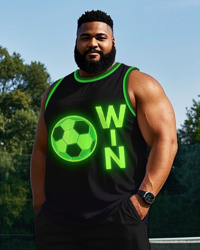 Big Men's Simple Football WIN Printed Casual Round Neck Basketball Vest and Shorts Set